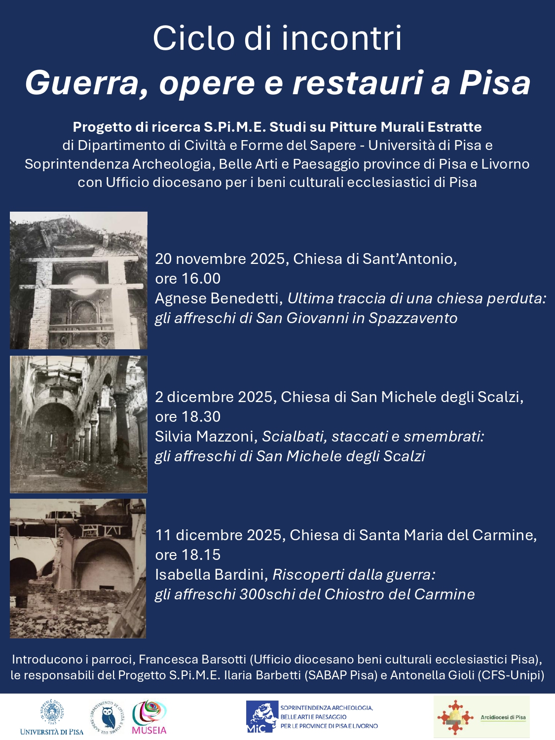 Guerra – opere e restauri a Pisa – tre incontri 20 novembre – 2 e 11 dicembre 2025